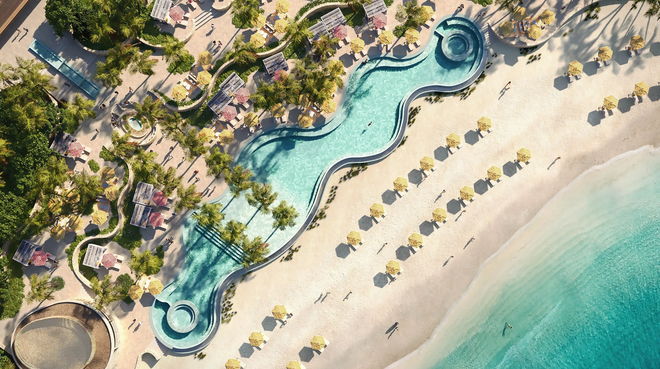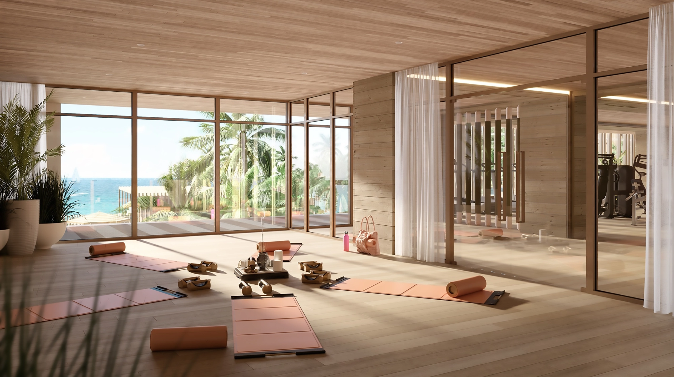 For those inspired by movement, rooftop tennis, padel, and pickleball courts rise above the shoreline, pairing active play with sweeping Caribbean views. A thoughtfully designed fitness centre featuring both indoor and outdoor guided classes creates space to restore energy, strength, and balance, surrounded by the beauty of sea and sky.